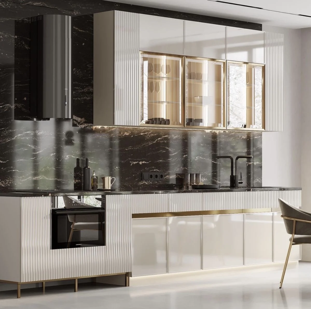 این نور باعث روشن شدن سطح کار و جلوه بهتر کابینتها میشود و حس لوکس و مدرن به فضا میدهد.