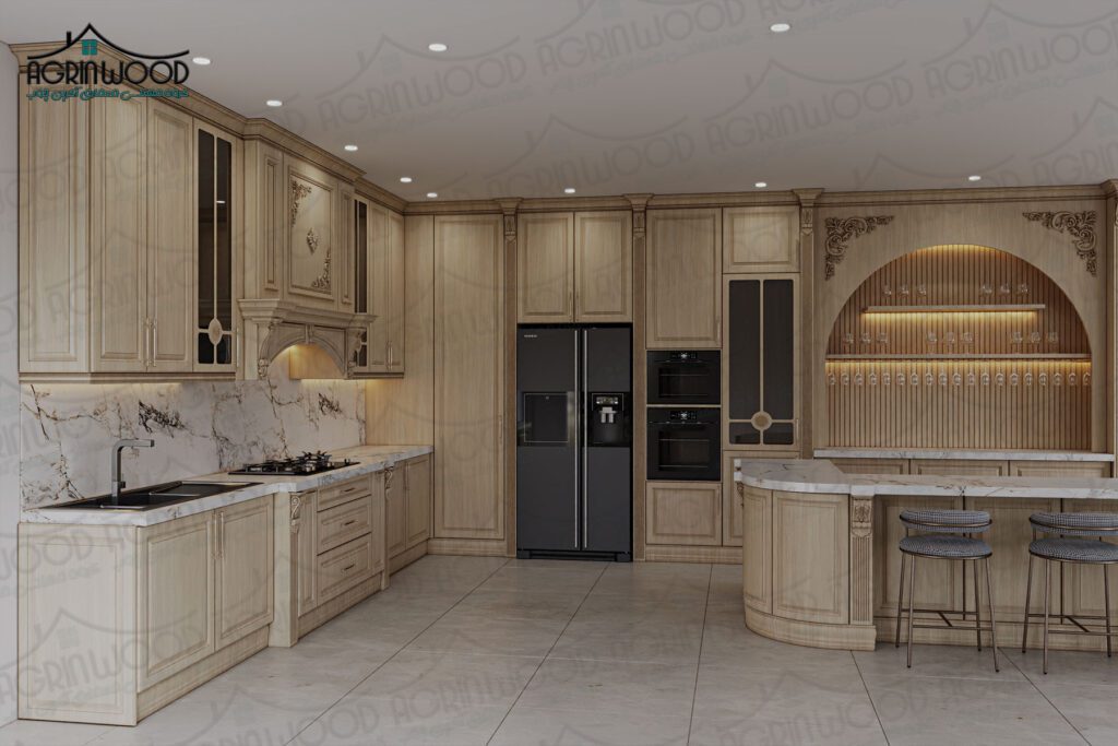 که به کابینتهای روکش چوب جلوهای لوکس و مدرن میدهد.
