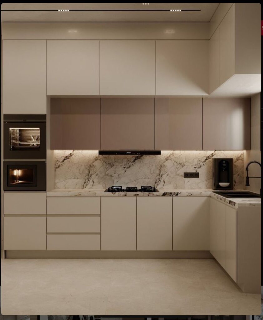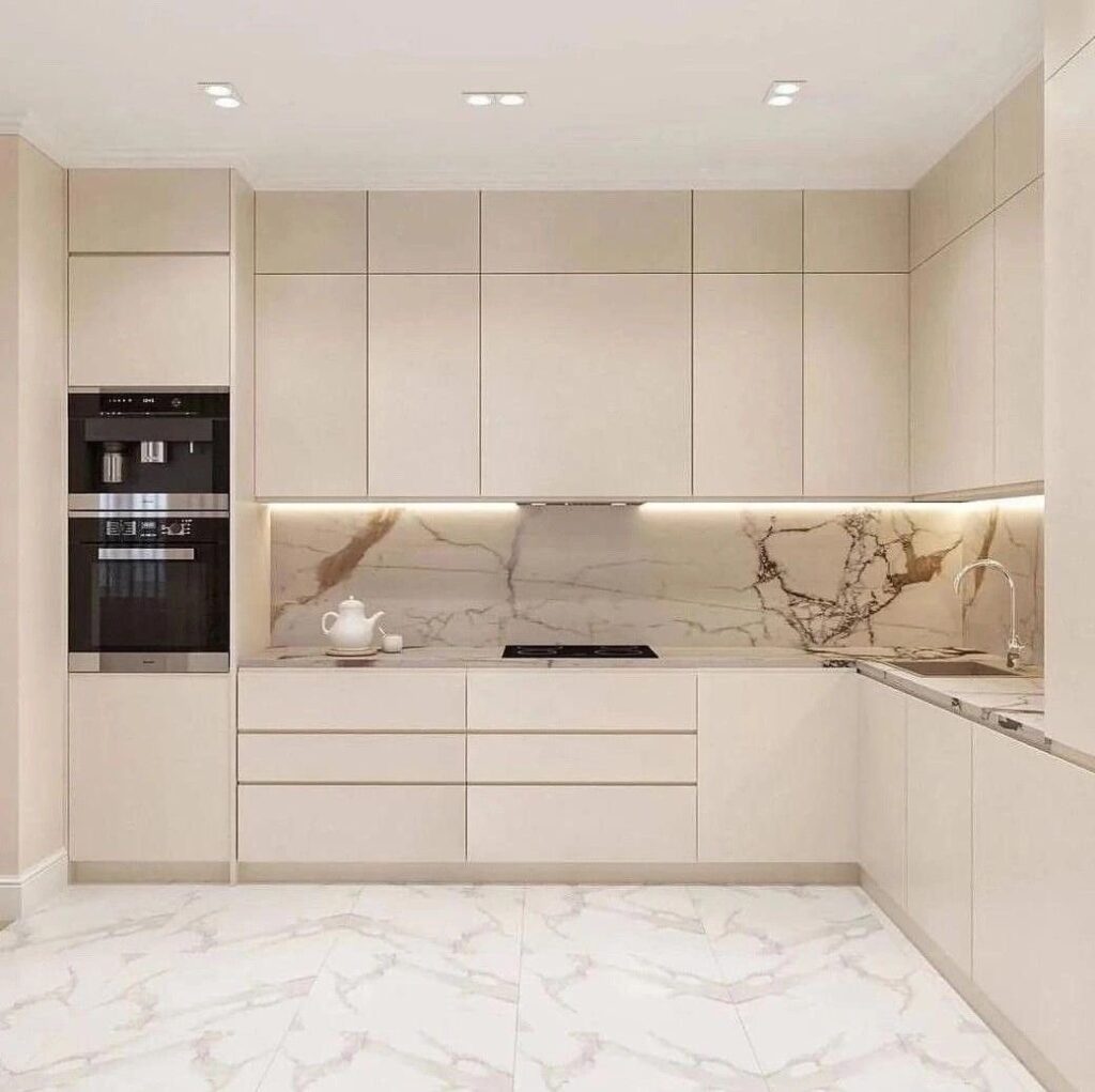 کابینتهای کرم براق به دلیل بازتاب نور و ایجاد جلوهای لوکس و مدرن،