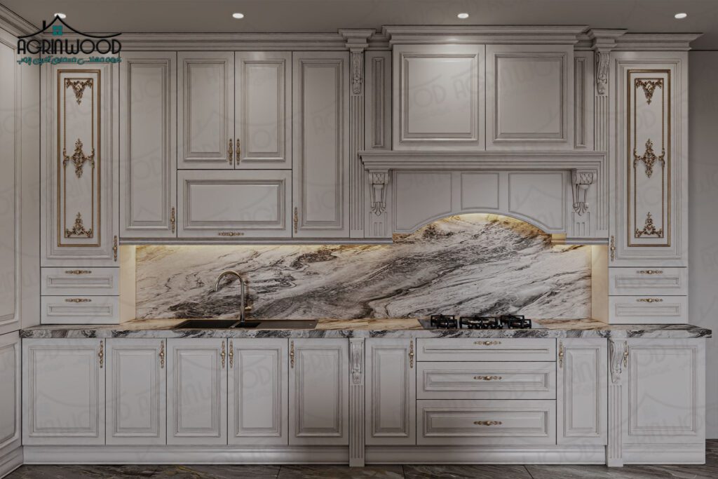 کابینتهای کلاسیک ساده به راحتی با کفپوشهای چوبی، سنگ و سایر عناصر دکوراسیون ترکیب میشوند.
