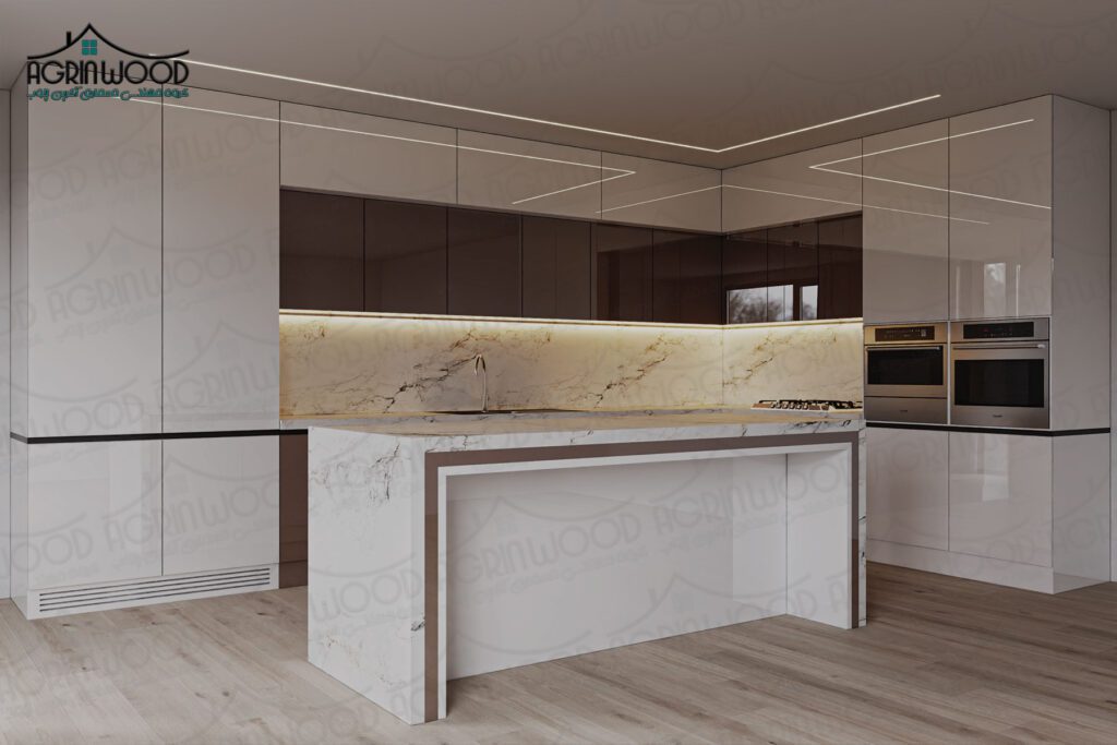 این نوع کابینت با سطح صاف و براق، جلوهای مدرن و لوکس ایجاد میکند