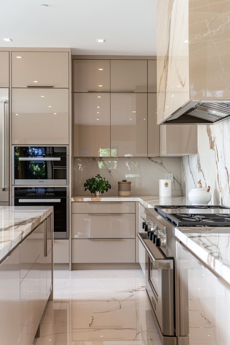 کابینتهای کرم پلی گلاس به دلیل درخشش بالا و ظاهری لوکس،