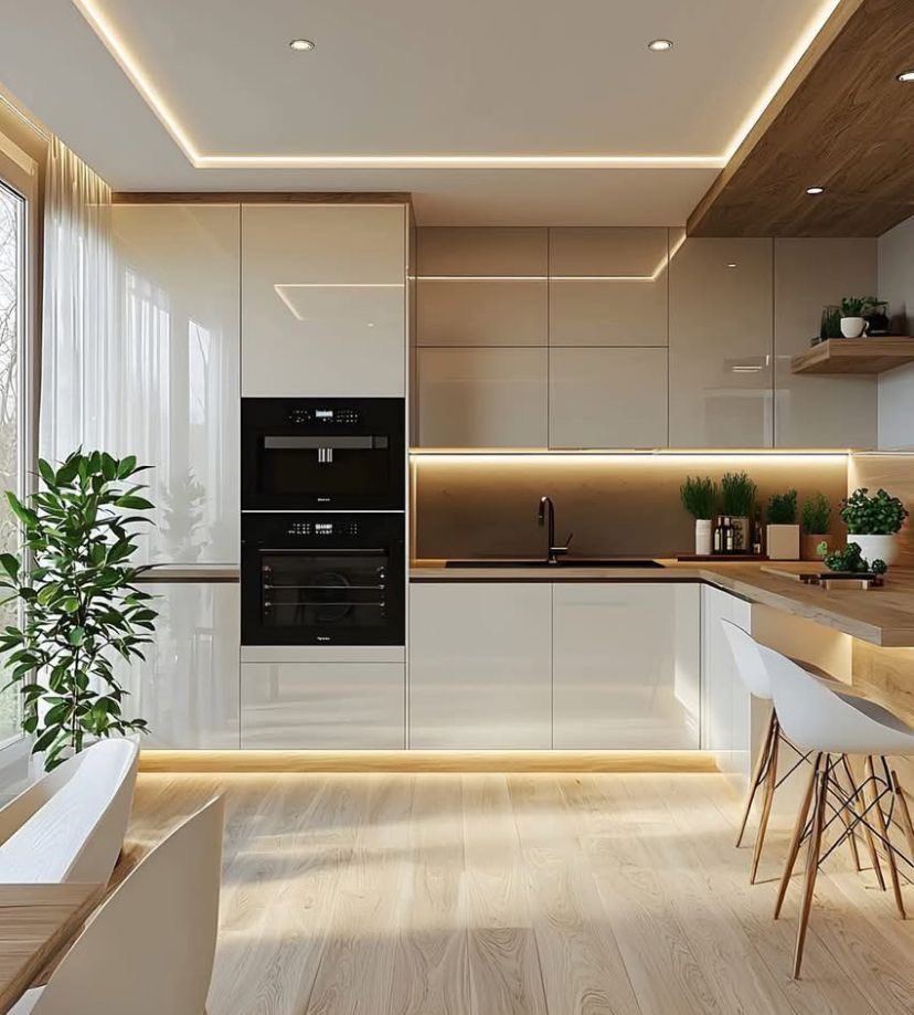 طراحی مینیمال و استفاده از دستگیرههای مخفی باعث یکپارچگی و تمیزی ظاهری میشود.