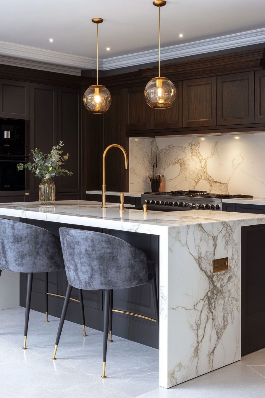 به زیبایی این ترکیب میافزاید و نتیجه نهایی، آشپزخانهای مدرن با رگههای کلاسیک است.