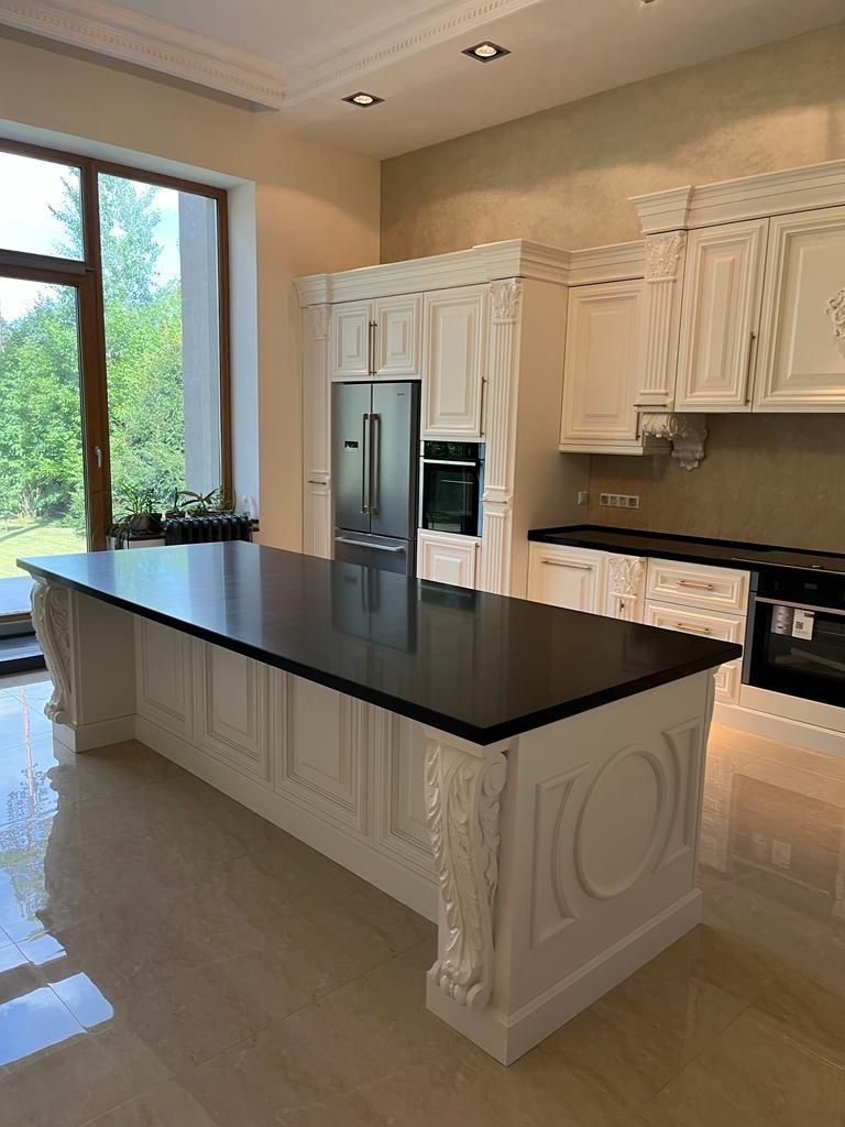 کابینتهای با روکش سنگ طبیعی در برابر حرارت و خط و خش بسیار مقاوم هستند