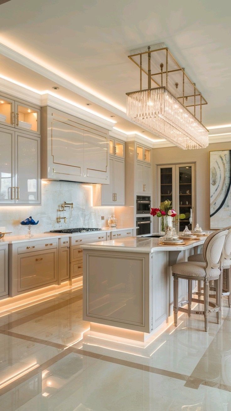 نورپردازی داخلی کابینتها و استفاده از چراغهای مخفی زیر کابینتهای دیواری