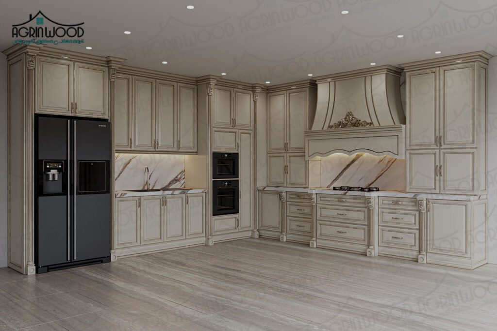 کابینتهای چوبی کرم کلاسیک با دوام بالا و قابلیت تعمیر و بازسازی، انتخابی بلندمدت و مطمئن هستند.