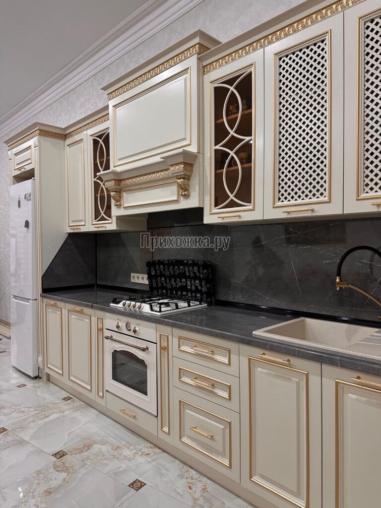 کابینت کرم کلاسیک با یراقآلات طلایی
