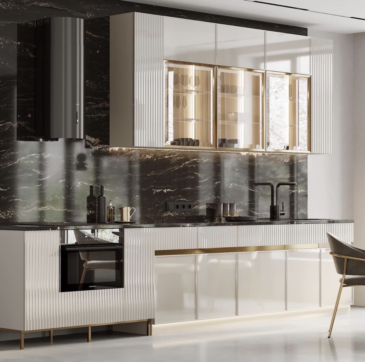 با طراحی قابدارو سطوح برجسته ابزارخورده، فضایی لوکس و باشکوه به آشپزخانه میبخشند.