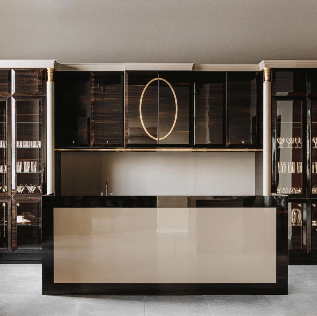 این سبک، برخلاف کابینت مدرن با خطوط صاف و بر جزئیات و جلوههای بصری تأکید دارد.