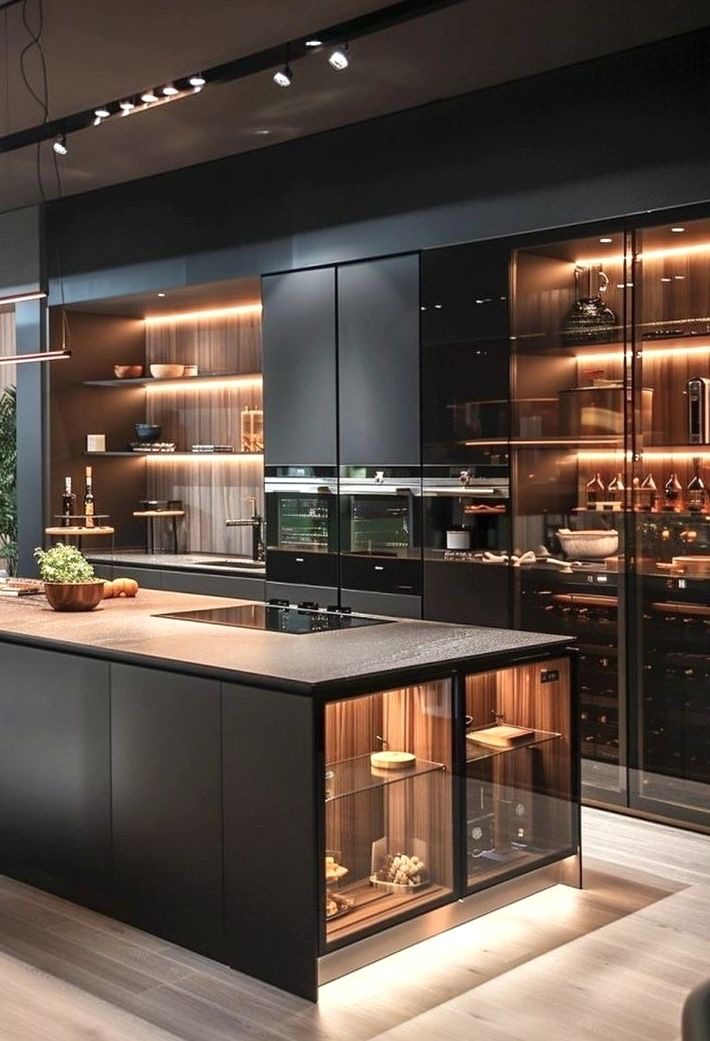 بهتر است مشکی در یراقآلات، صفحه کابینت یا کاشی بین کابینتها استفاده شود
