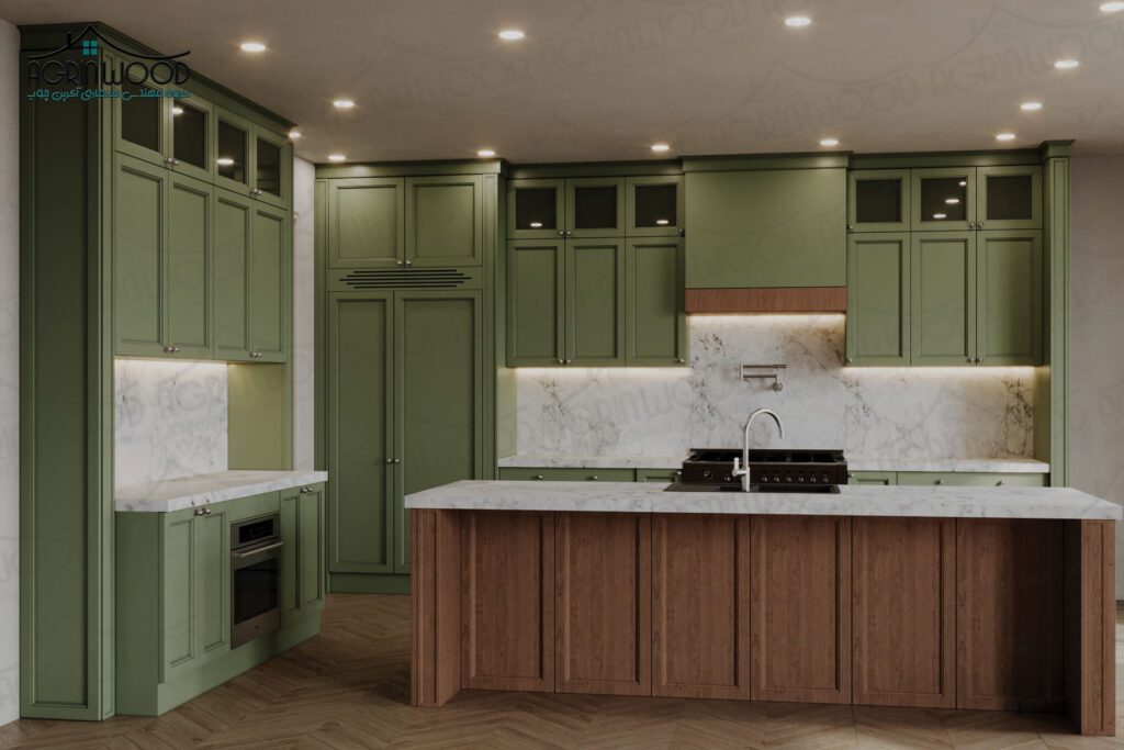 این رنگ با تداعی حس طبیعت و تازگی، آشپزخانه را زنده و شاد نشان میدهد.