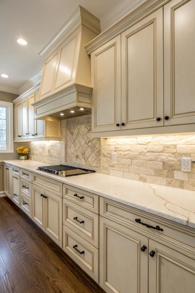 رنگهای بژ و کرم همیشه انتخابی امن و شیک برای کابینتها هستند.