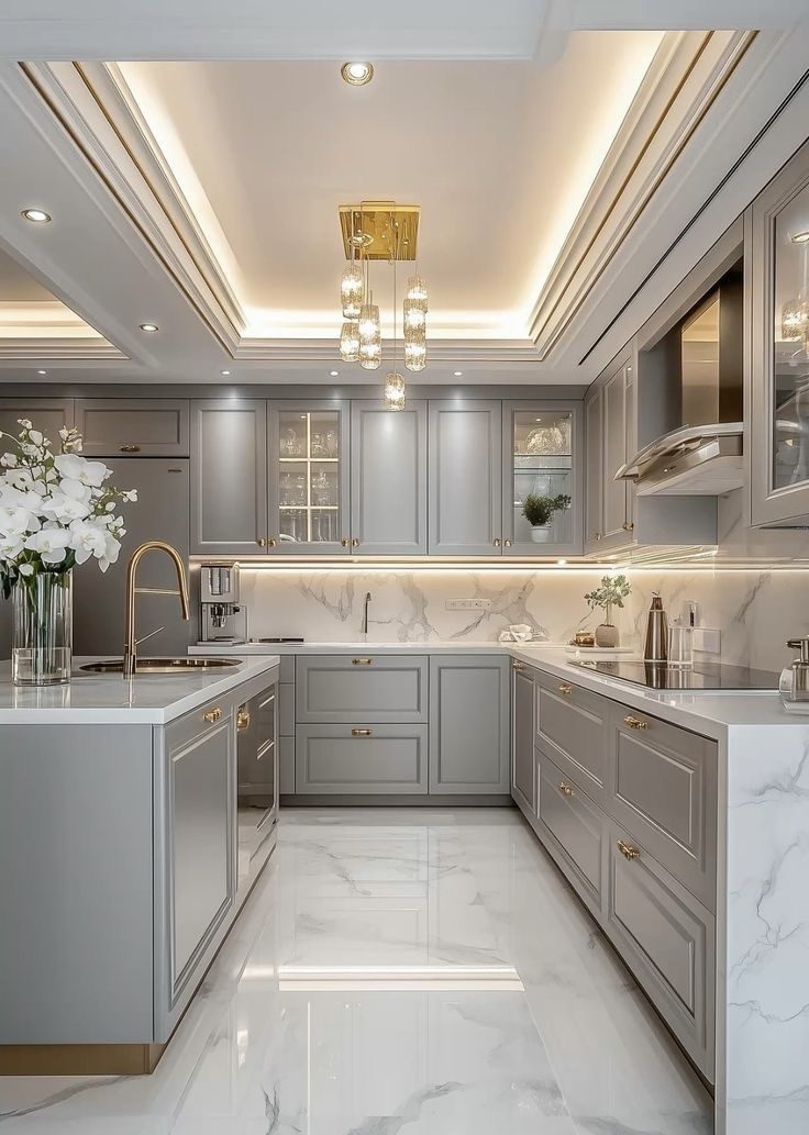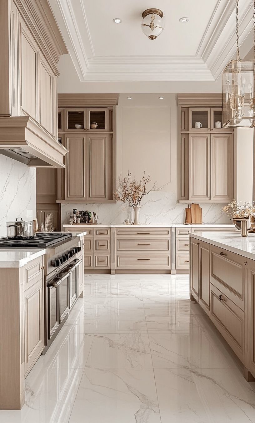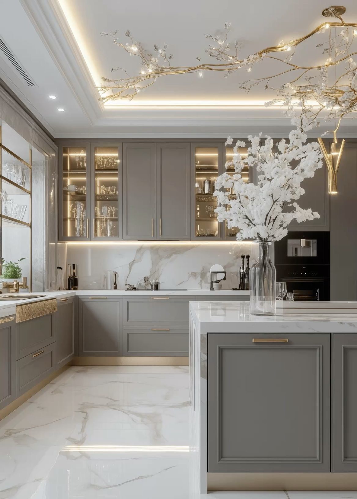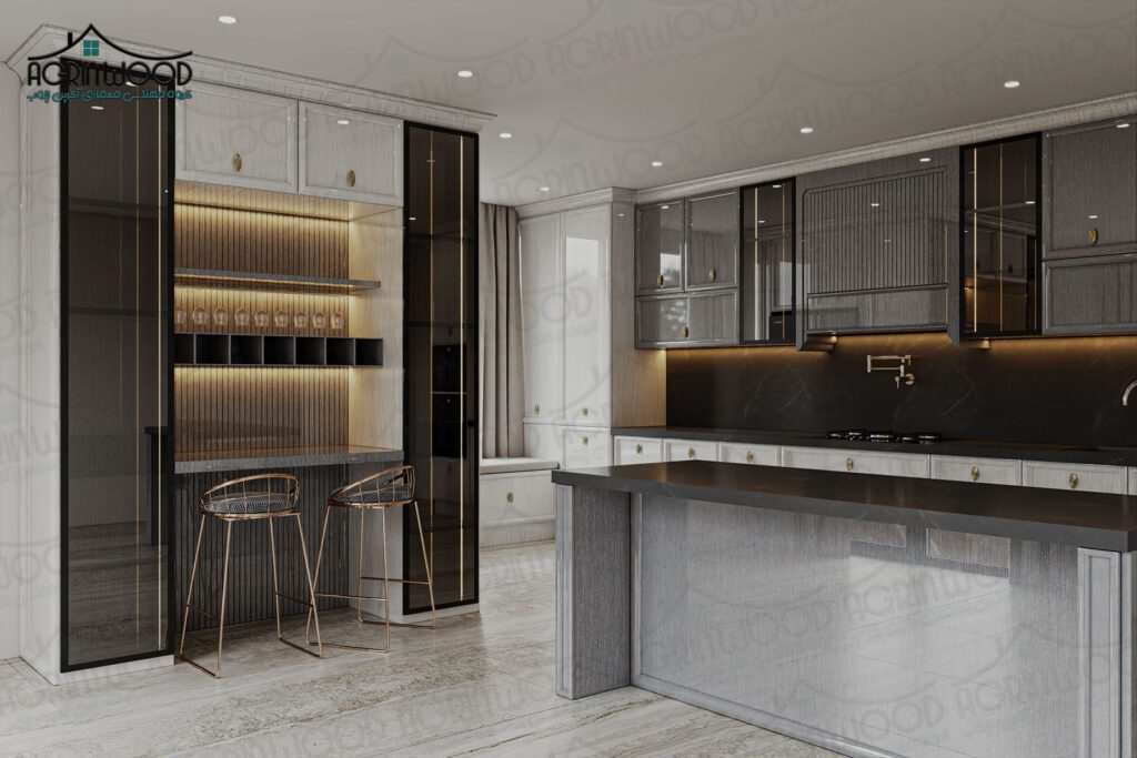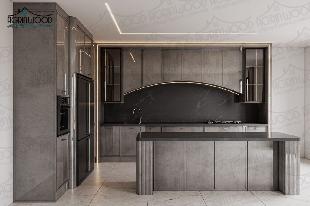 تا طوسی تیره که جلوهای لوکس و سنگین به آشپزخانه میبخشد.