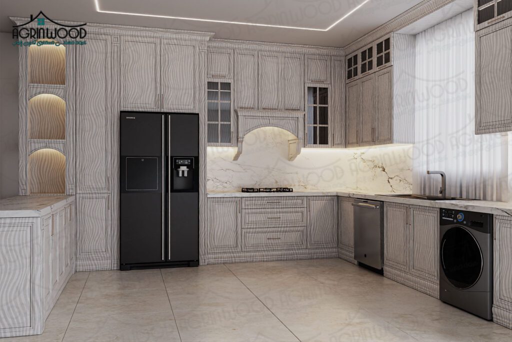 اگر فضای آشپزخانه بزرگ باشد، روکش نئوکلاسیک میتواند
