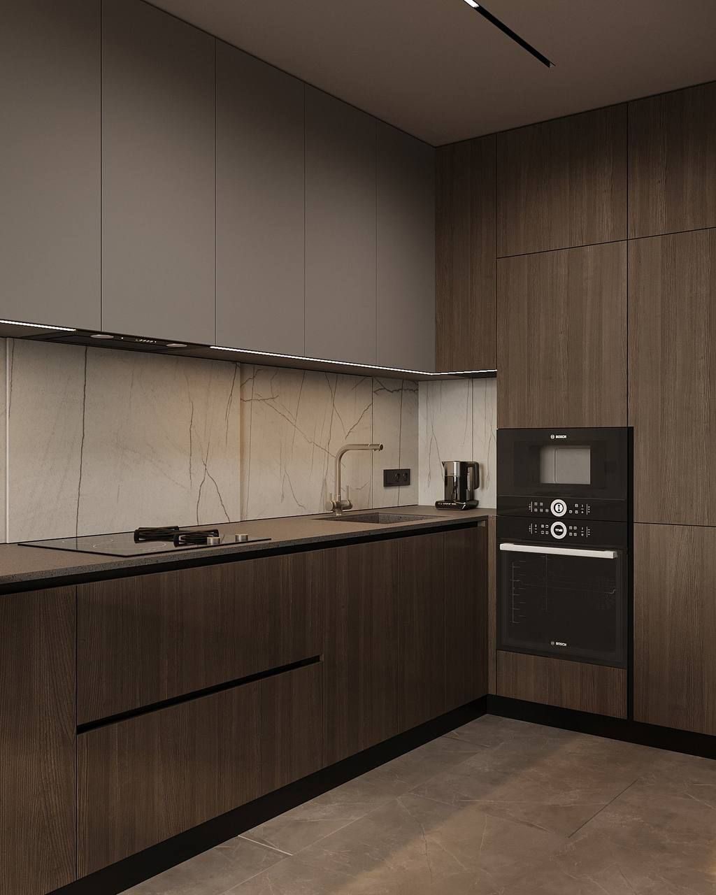 کابینتهای بدون دستگیره (push to open) یا با دستگیرههای مخفی به این طراحی کمک زیادی میکنند.