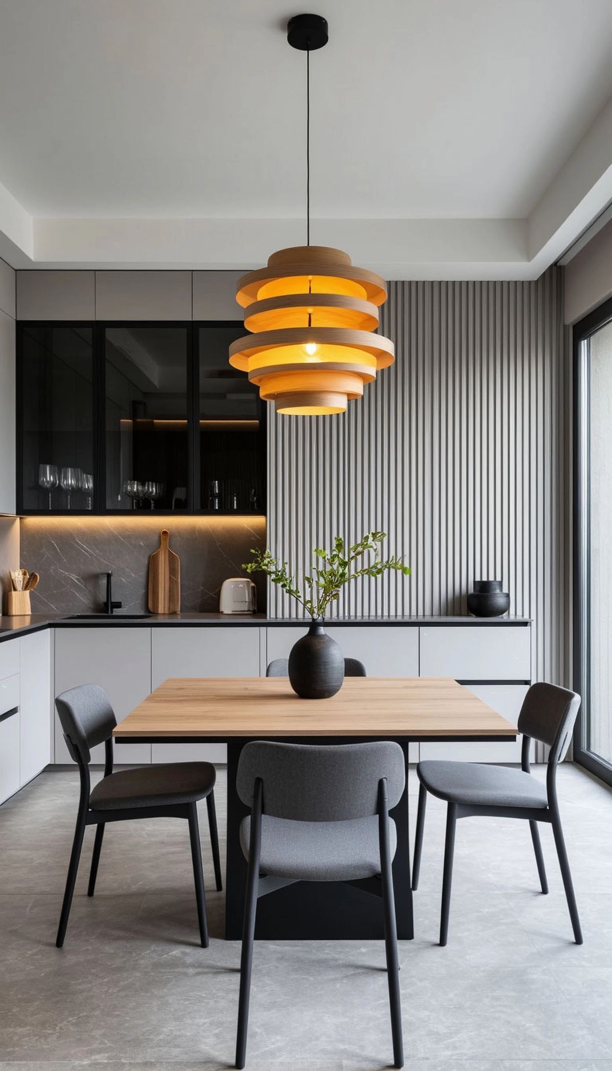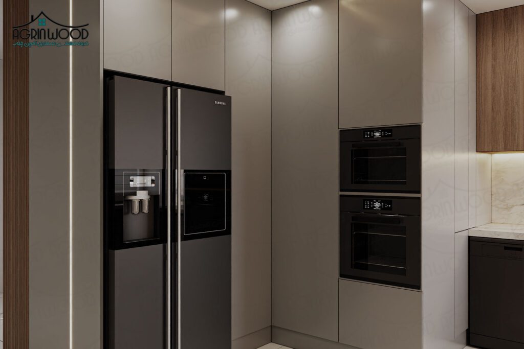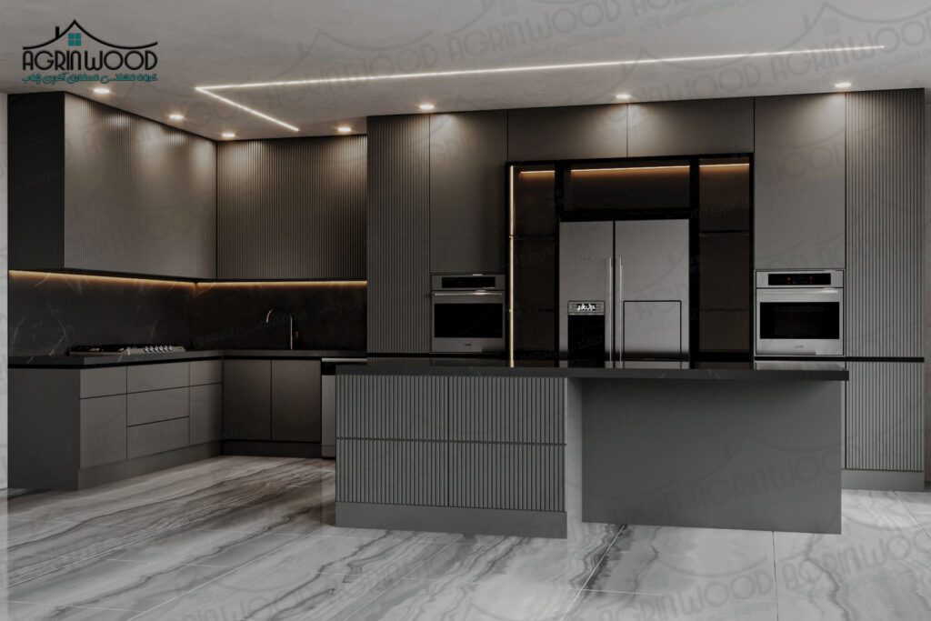 و فضایی مینیمال و لوکس ایجاد میکند. کابینت خاکستری برای کسانی که