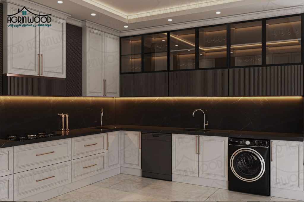 همین تضاد کنترلشده باعث میشود مدل شیک کابینت نئوکلاسیک نهتنها زیبا بلکه ماندگار و همیشهبهروز به نظر برسد.