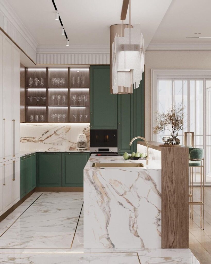 آشپزخانهای است که حس شکوه و آرامش را همزمان منتقل میکند.