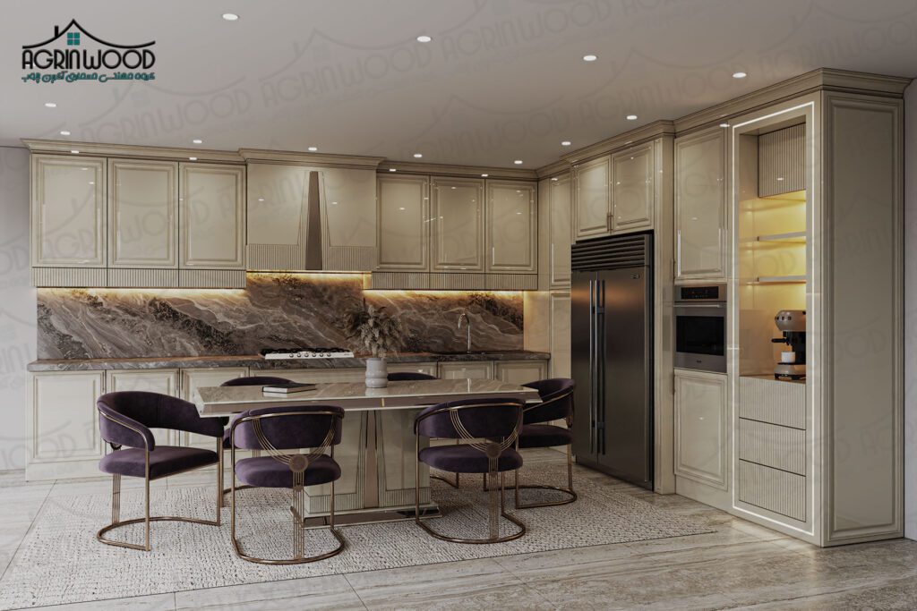 همین جزئیات کوچک اما دقیق، تفاوت آشپزخانهای نئوکلاسیک را با سایر سبکها بهخوبی نمایان میکند.