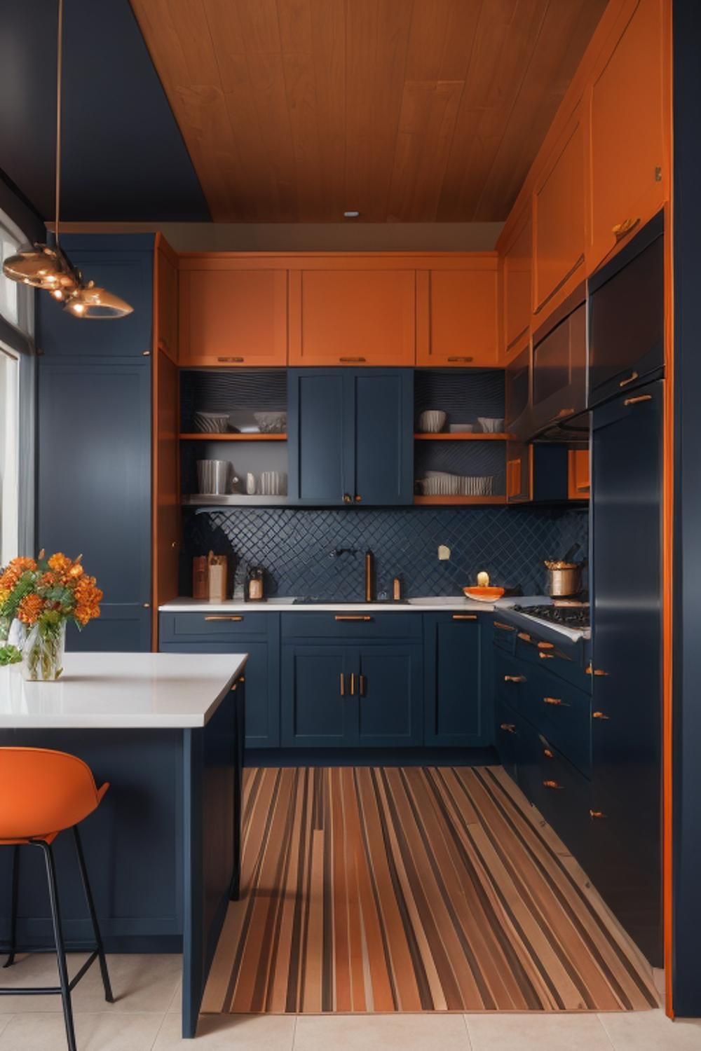 انتخاب رنگهای متنوع و هماهنگ با سبک آشپزخانه، جذابیت بصری فضا را افزایش میدهد،