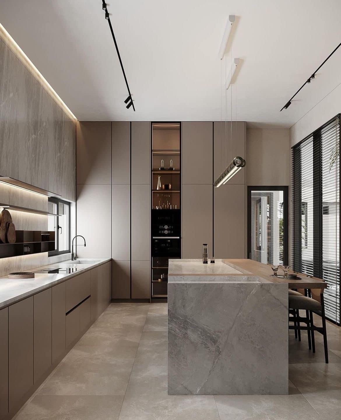 در سبک مینیمال از کابینتهای ملامینه بدون دستگیره استفاده میشود