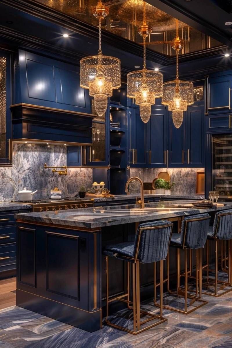 ترکیب رنگهای مکمل با کابینت سرمه ای در فضای داخلی