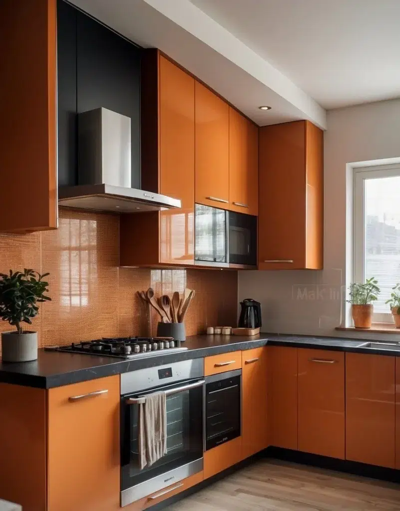 کابینت ملامینه نارنجی نشان میدهد که برای داشتن آشپزخانهای زیبا،