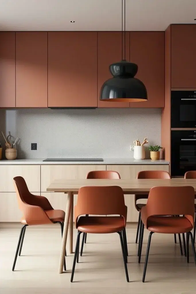 این تضاد ملایم، فضا را از یکنواختی خارج میکند و روحی گرم به آشپزخانه میدمد.