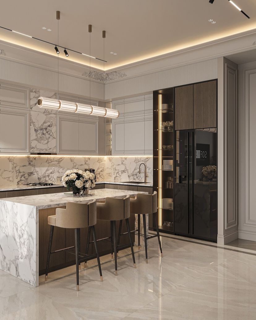 در خانههای مجلل و ویلاها، کابینتهای نئوکلاسیک رنگشده
