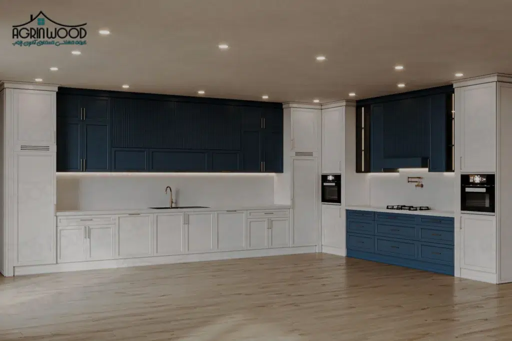 کابینت نئوکلاسیک سرمه ای سبکی است که ظرافت کلاسیک را با سادگی مدرن ترکیب میکند