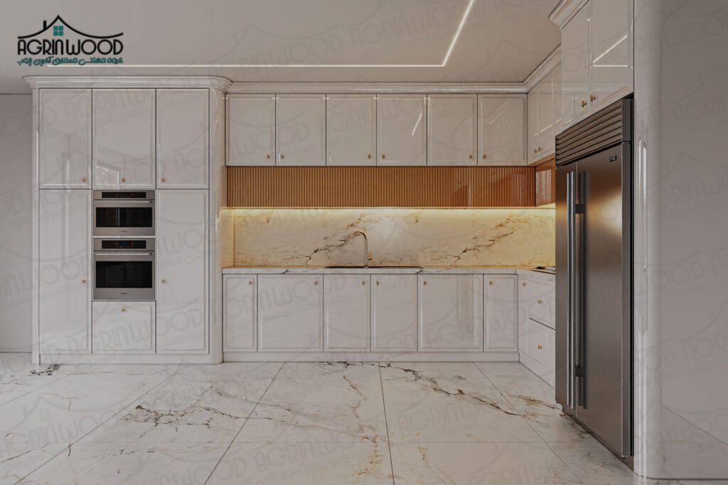 دستگیرهها و جزئیات فلزی با طراحی مدرن یا کلاسیک، جلوه بصری کابینت را تقویت میکنند.