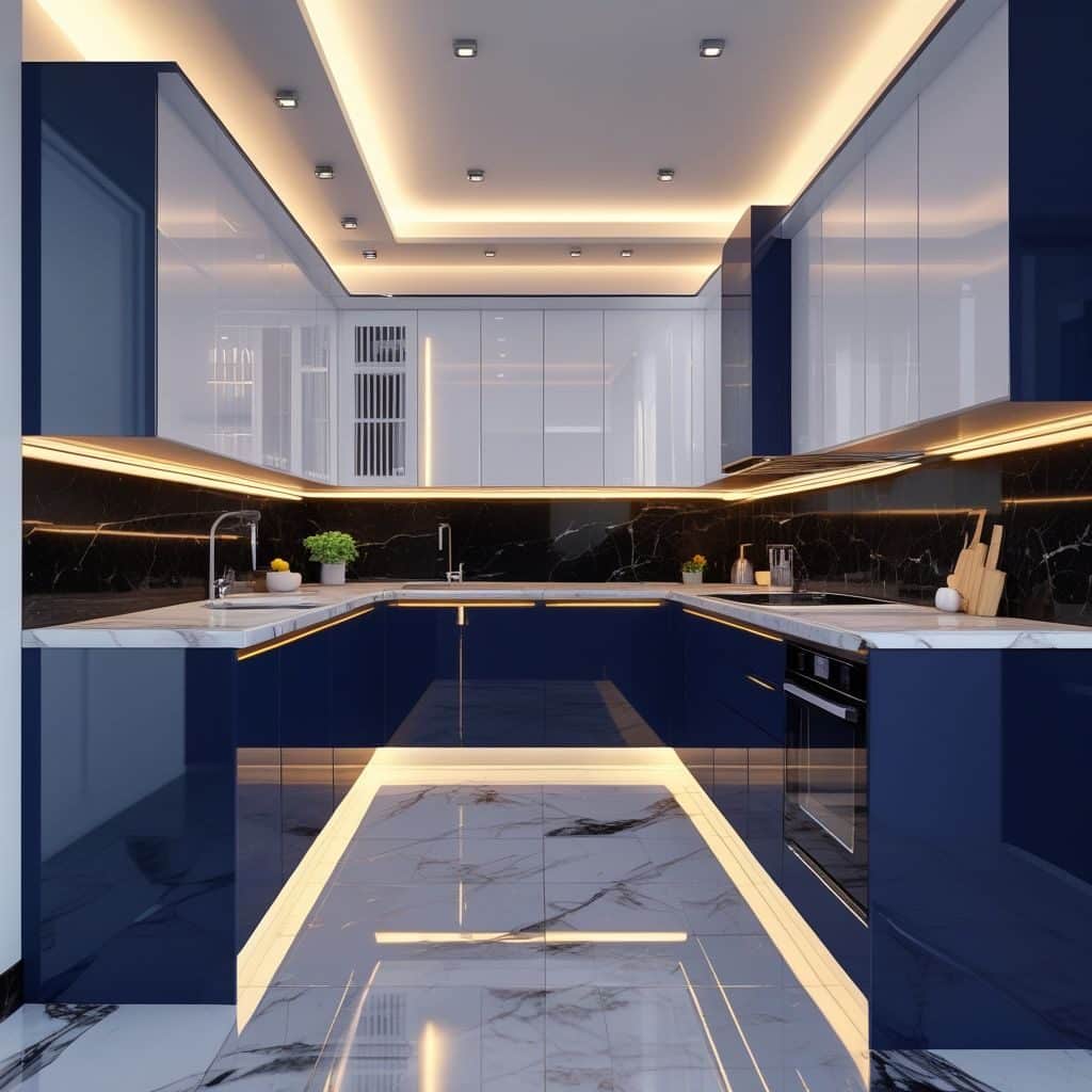 ترکیب رنگهای مکمل با کابینت هایگلاس سرمهای