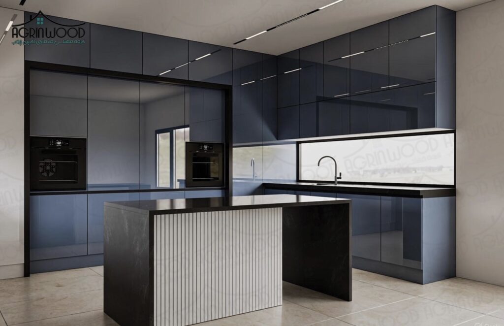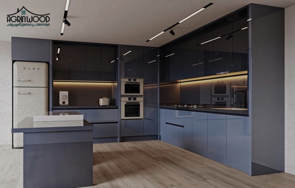 کابینت هایگلاس سرمهای انتخابی لوکس، مدرن و بسیار تأثیرگذار در طراحی آشپزخانه است.