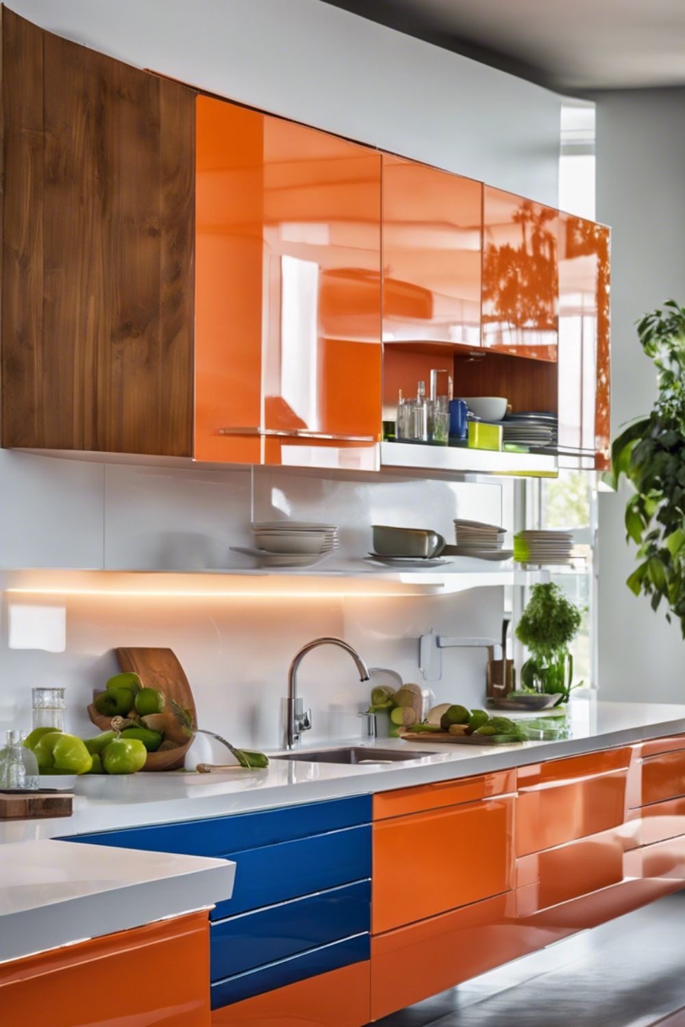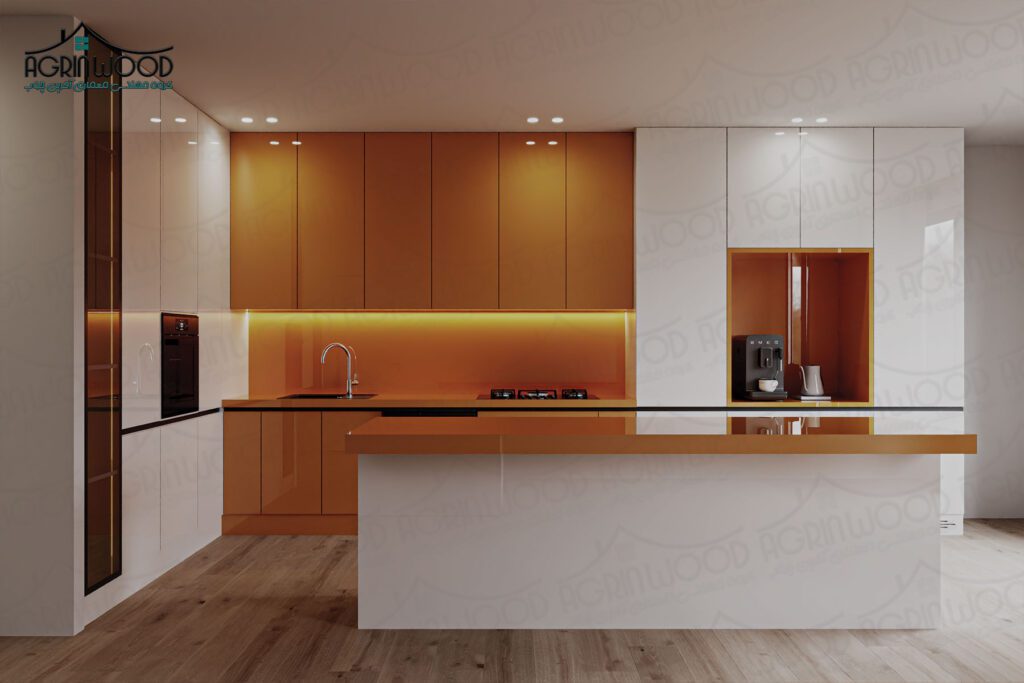 کابینت پلی گلاس نارنجی انتخابیست برای کسانی که از فضاهای تکراری خسته شدهاند