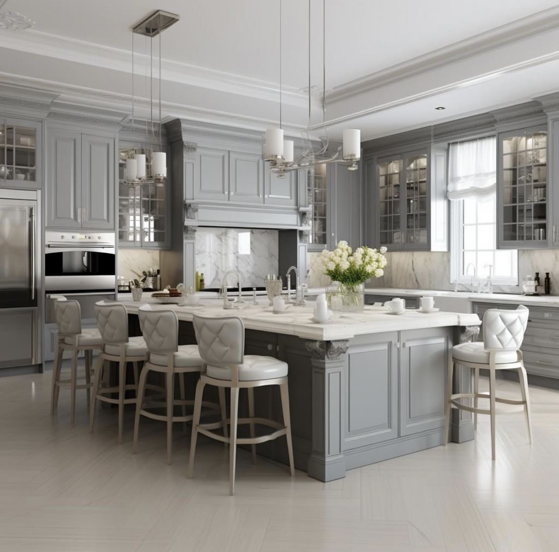 از قاب‌بندی‌های ظریف و خطوط نرم استفاده می‌شود که جلوه‌ای آرامش‌بخش به آشپزخانه می‌دهد.